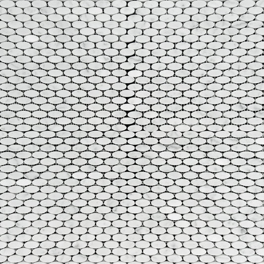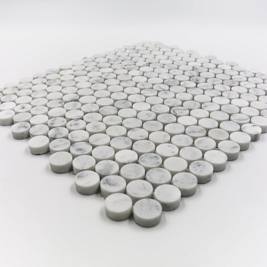 Carrara White Penny Round with Thassos and Grey Mosaic